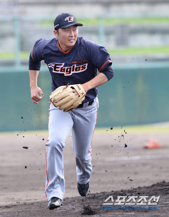 4일 일본 오키나와 고친다구장에서 한화 이글스 선수단이 스프링캠프 훈련에 임했다. 수비 훈련을 하고 있는 배영수. 오키나와=송정헌 기자 songs@sportschosun.com/2017.02.04 |