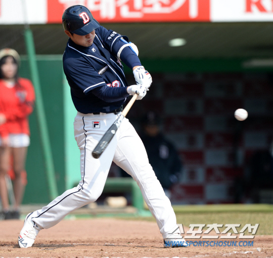 김재호는 이날 월드베이스볼클래식(WBC) 부상 후 처음 시범경기에 출전했다. 그는 지난 6일 WBC 이스라엘전에서 사구를 2개나 맞아 타박상을 입었고 이후 경기에 출전하지 못했다.