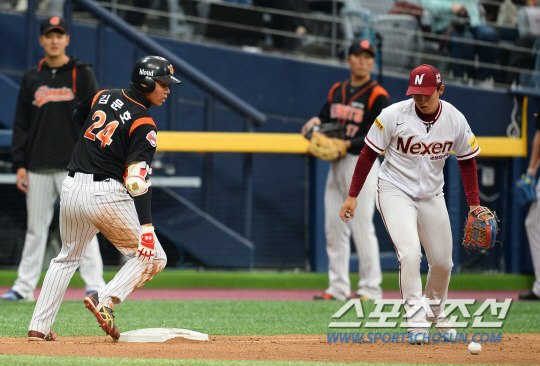 넥센은 이정후만 출루하면 뭔가 상황이 발생한다. 8회초 롯데는 6번째 투수 마무리 손승락을 마운드에 올렸다. 선두 1번 이정후의 중전안타, 이정후의 이날 세번째 안타. 무사 1루에서 2번 김하성의 유격수 정면타구를 롯데 유격수 김민수가 더블플레이를 서두르다 잡다 놓쳤다. 뒤늦게 2루 베이스를 직접 밟았으나 늦었고, 1루로는 악송구. 2루주자는 3루를 거쳐 홈으로 파고들었고, 홈으로 뿌린 송구마저 악송구. 넥센은 1득점하고 무사 3루 찬스를 잡았다. 3번 김웅빈과 4번 김태완이 연속 삼진을 당했지만 5번 고종욱이 1타점 좌중간 안타를 때렸다.