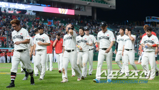 2017 KBO리그 SK와이번즈와 롯데 자이언츠의 경기가 30일 인천SK행복드림구장에서 열렸다. SK 선수들이 팀의 2대3 패배를 확정짓고 관중들에게 답례하고 있다. 인천=최문영 기자 deer@sportschosun.com /2017.07.30/ |
