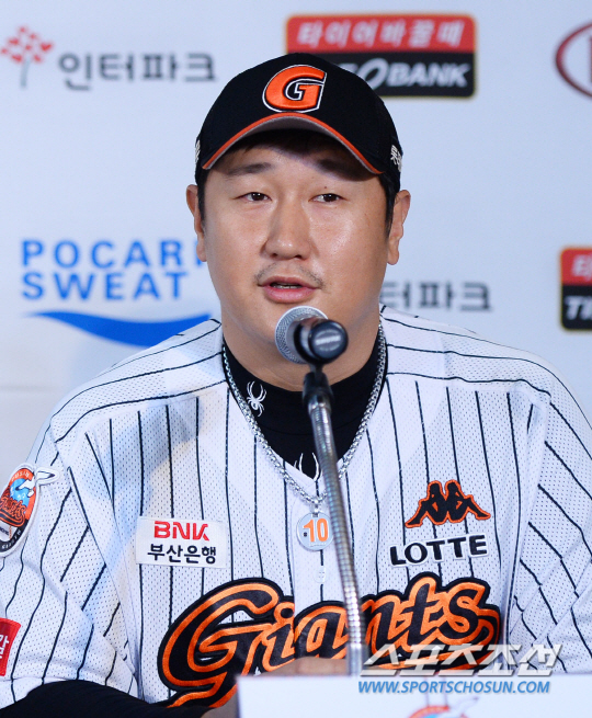 | 2017 KBO리그 넥센과 롯데의 준플레이오프 미디어데이가 7일 오후 부산 사직구장에서 열렸다. 롯데 이대호가 소감을 말하고 있다. 부산=정재근 기자 cjg@sportschosun.com/2017.10.07/ |