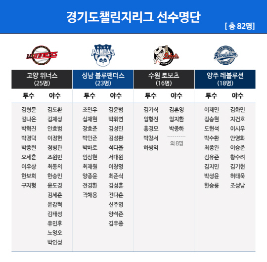 다행히 이미 선수단 구성이 완료된 팀이 대부분이어서 시즌 준비를 빠르게 들어갈 수 있었다. 고양 위너스 25명, 성남 블루팬더스 23명, 수원 로보츠 16명, 양주 레볼루션 18명으로 총 82명의 선수단이 확보되었고 이미 지난 1월부터 각 팀의 동계 훈련이 시작됐다.
