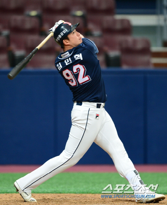 두산 베어스 김민혁이 역전 투런포를 쏘아올렸다.