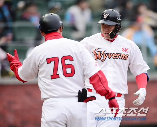 SK도 가만 있지 않았다. 3회말 2아웃 이후 정의윤 볼넷, 한동민 2루타로 만든 2,3루 찬스에서 김동엽이 2타점 적시타를 때려냈다. 4회말에는 정의윤의 희생플라이로 또 1점 달아났다.