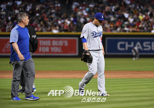 류현진은 3일(이하 한국시각) 미국 애리조나주 체이스필드에서 열린 애리조나와의 경기에 선발 등판했지만 1⅓이닝만에 부상으로 교체됐다. 갑작스런 상황이었다. 1-0으로 앞선 2회말 1사에서 두번째 타자 7번 데븐 마레로를 상대하다 통증을 호소했다. 2S의 유리한 상황에서 두번째 볼을 던진 뒤 뭔가 불편한 듯 트레이너를 불렀고 결국 마운드를 내려갔다.