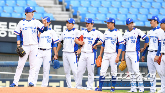 ◇야구 대표팀 투수조가 지난달 21일 잠실구장에서 진행된 훈련에 임하고 있다. 잠실=허상욱 기자 wook@sportschosun.com