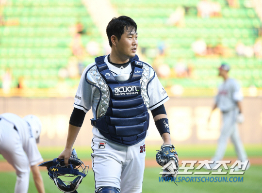 7월 31일 서울 잠실야구장에서 KBO리그 두산 베어스와 LG 트윈스의 경기가 열렸다. 두산 유희관과 LG 임찬규가 선발 맞대결을 펼쳤다. 1회 만루 위기를 무실점으로 넘긴 양의지가 웃으며 그라운드를 내려오고 있다. 잠실=송정헌 기자 songs@sportschosun.com/2018.07.31/