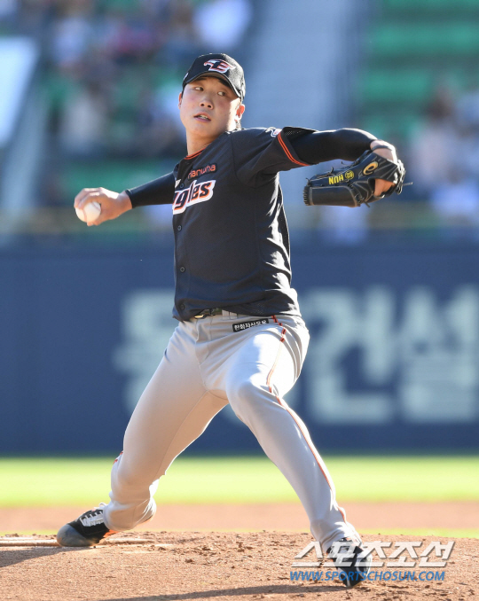 한화 이글스 김성훈이 30일 아버지가 있는 KIA 타이거즈전에 선발등판했으나 2이닝 1실점한 뒤 강판됐다. 잠실=최문영 기자 deer@sportschosun.com /2018.09.08/ |