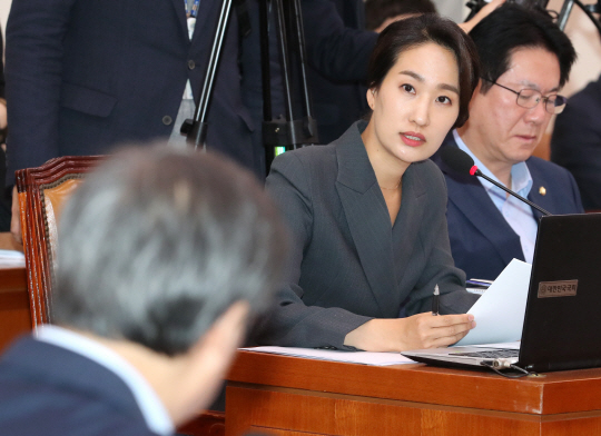 질의하는 김수민 (서울=연합뉴스) 김주형 기자 = 바른미래당 김수민 의원이 10일 오전 국회에서 열린 문화체육관광위원회 국정감사에서 질의하고 있다. 2018.10.10 kjhpress@yna.co.kr (끝)
