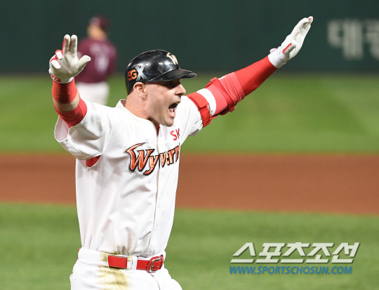 SK 와이번스 제이미 로맥이 3차전 선제 스리런포를 날렸다.