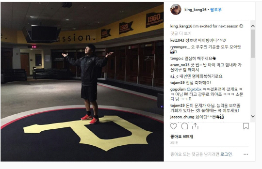 미국 메이저리그 피츠버그 파이어리츠와 재계약을 체결한 강정호가 개인 SNS 계정을 통해 내년 시즌에 대한 각오를 다시 한번 밝혔다.