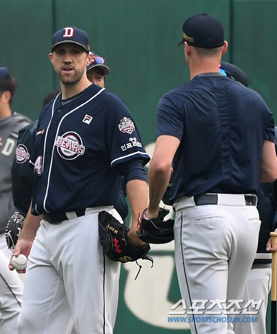 2018 KBO리그 두산과 SK의 KS 3차전이 7일 오후 인천 SK행복드림구장에서 열린다. 경기 전 두산 린드블럼과 후랭코프가 훈련을 하고 있다. 인천=정재근 기자 cjg@sportschosun.com