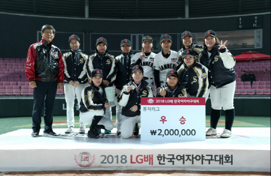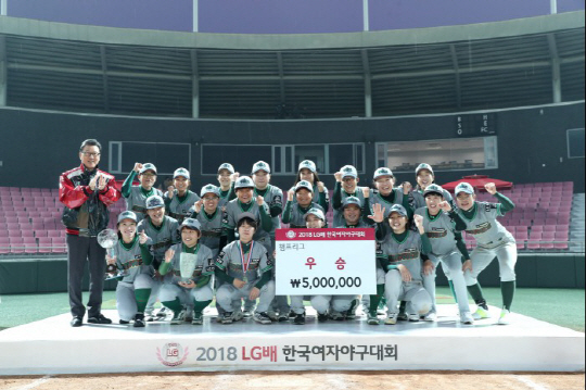 여자야구선수들을 위한 잔치, 2018년 LG배 한국여자야구대회가 4주간의 일정을 마치고 11일 폐막했다. 11일 경기도 이천 LG 챔피언스파크에서 열린 챔프리그 결승전에서 '나인빅스'가 '블랙펄스'를 11대5으로 누르고 우승 트로피를 들어올렸다. 퓨처리그에서는 '해머스 스톰'이 '떳다볼'을 14대10으로 꺾고 정상을 밟았다.