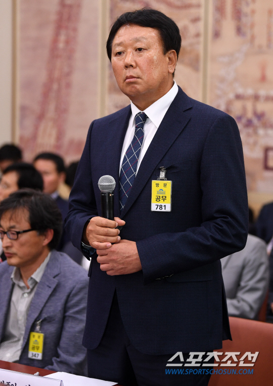 선동열 국가대표야구팀 감독이 10일 서울 여의도 국회에서 열린 문화체육관광위원회 국정감사에서 증인으로 참석해 질문에 답하고 있다. 선동열 감독은 2018 자카르타-팔렘방 아시안게임 야구대표 병역 미필선수 선발 논란과 관련해 증인으로 채택됐다. 허상욱 기자 wook@sportschosun.com