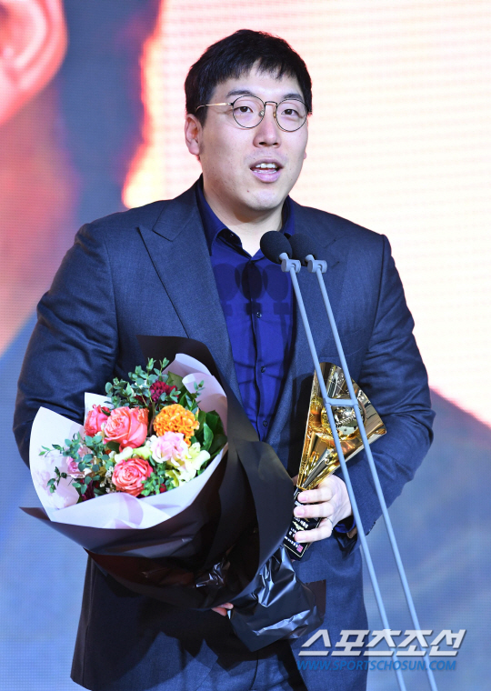 2018 KBO 시상식이 19일 오후 서울 르메르디앙 호텔에서 열렸다. 시상식에서 KBO리그 타자 부문 타율상을 받은 LG 김현수가 수상소감을 밝히고 있다. 김경민 기자 kyungmin@sportschosun.com /2018.11.19/ |