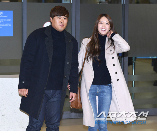 | 20일 오후 美프로야구 LA 다저스 류현진이 인천공항을 통해 귀국했다. LA 다저스의 퀄리파잉 오퍼를 받아들여 1790만달러(약 202억원) 연봉을 받으며 내년에도 다저스 유니폼을 입게되는 류현진은 귀국 후 휴식과 국내 스케줄을 소화할 예정이다. 입국장에서 밝은 표정으로 포즈를 취하고 있는 류현진, 배지현 부부. 인천공항=송정헌 기자 songs@sportschosun.com/2018.11.20/ |