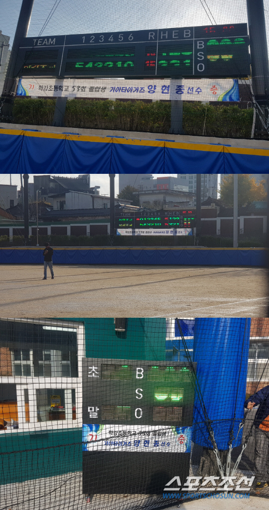 양현종은 이어 "학교 야구장이 많이 바뀌었다고 하더라. 전광판이 생겨 더 야구장이 예쁘게 된 것 같다"며 "선수 이름까지 나오는 전광판도 생각했는데 너무 과한 것 같다고 해 팀 이름과 라인 스코어만 들어가는 것으로 골랐다"고 말했다.