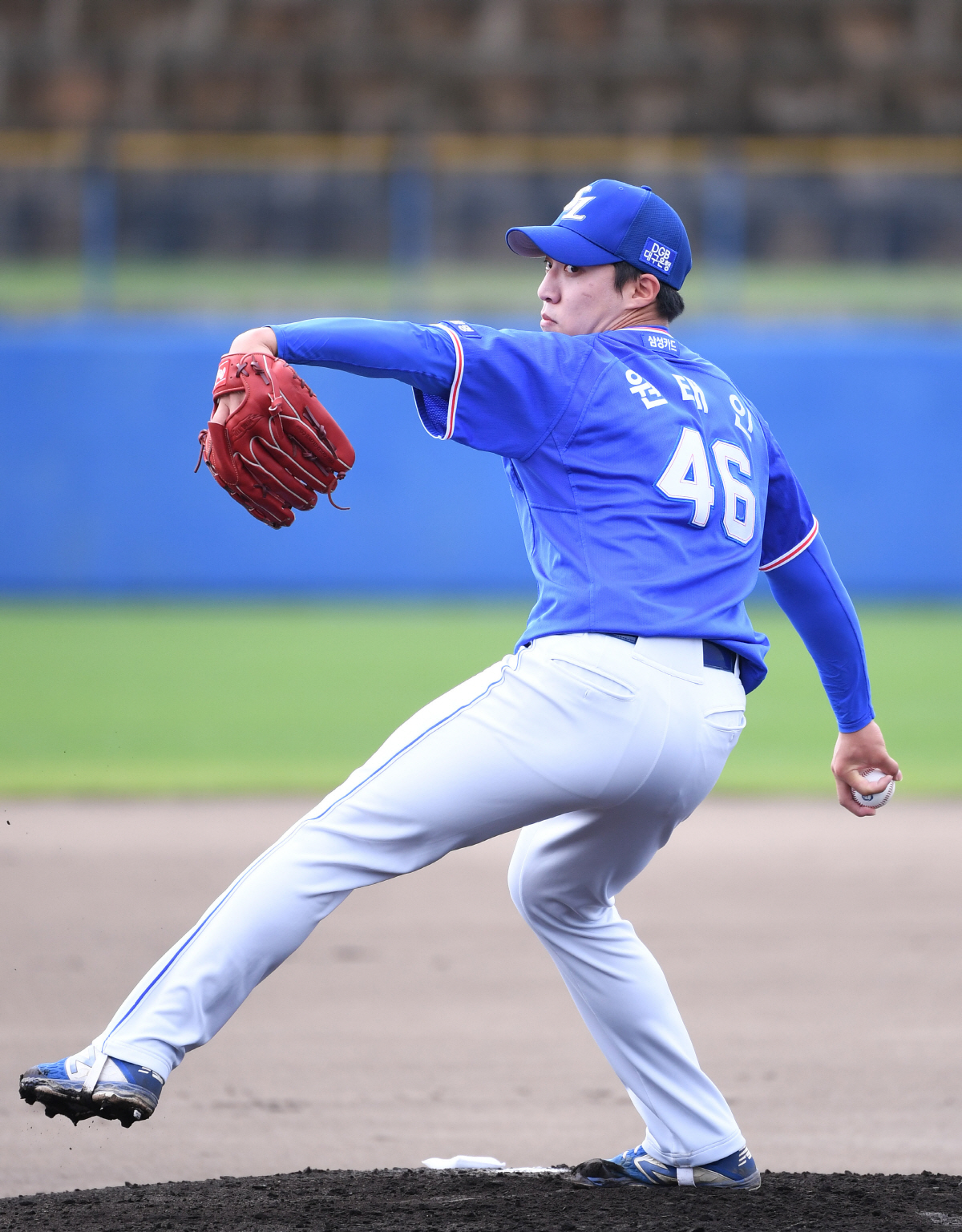 25일 일본 오키나와 온나손 아카마구장에서 삼성 라이온즈 선수단이 스프링캠프 훈련을 펼쳤다. 힘차게 투구하고 있는 원태인. 오키나와(일본)=송정헌 기자 songs@sportschosun.com/2019.02.25/