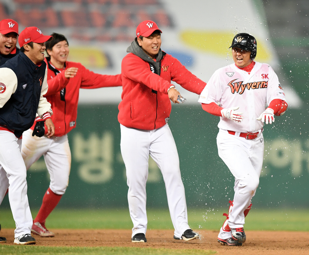 SK는 27일 인천에서 열린 LG 트윈스와의 홈게임에서 1-1로 맞선 연장 11회 그동안 무안타로 부진했던 최 정의 끝내기 안타에 힘입어 2대1로 승리했다. 3승1패를 마크한 SK는 공동 1위가 됐다. LG 역시 3승1패가 돼 단독 선두 자리에서 하루 만에 공동 선두로 내려왔다.
