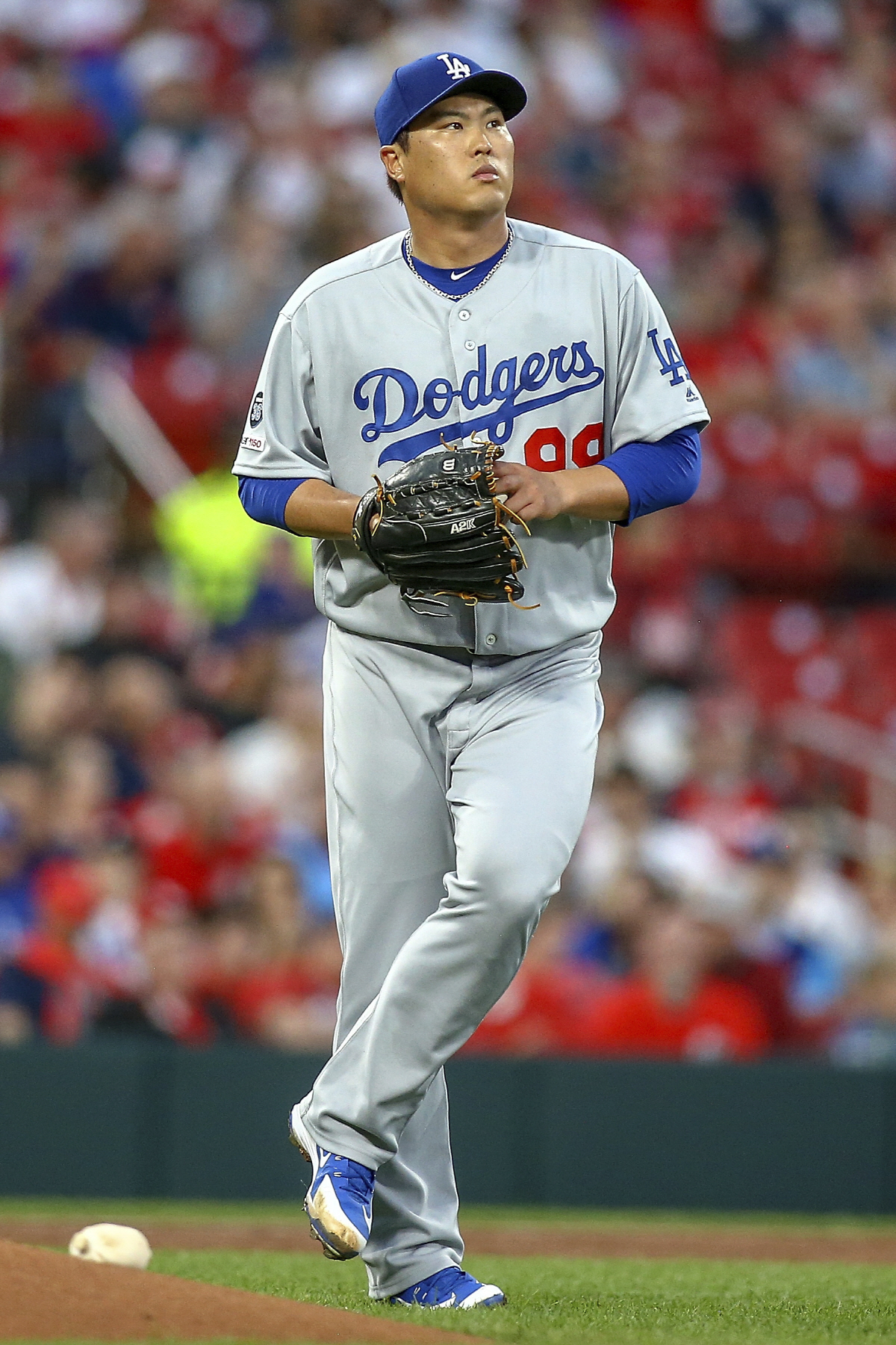 류현진은 9일(한국시각) 미국 미주리주 세인트루이스 부시스타디움에서 열린 세인트루이스 카디널스와의 원정 경기에 선발 등판해 1⅔이닝 2안타(1홈런) 1볼넷 1탈삼진 2실점을 기록한 뒤 교체됐다. 류현진은 34구 소화에 그쳤다. 2회말 아웃카운트 2개를 잡은 류현진은 세 번째 타자 마일스 미콜라스에게 초구 체인지업을 던지고 몸에 이상을 호소했다. 구단 확인 결과 류현진은 왼쪽 사타구니 부분에 통증을 느꼈다.