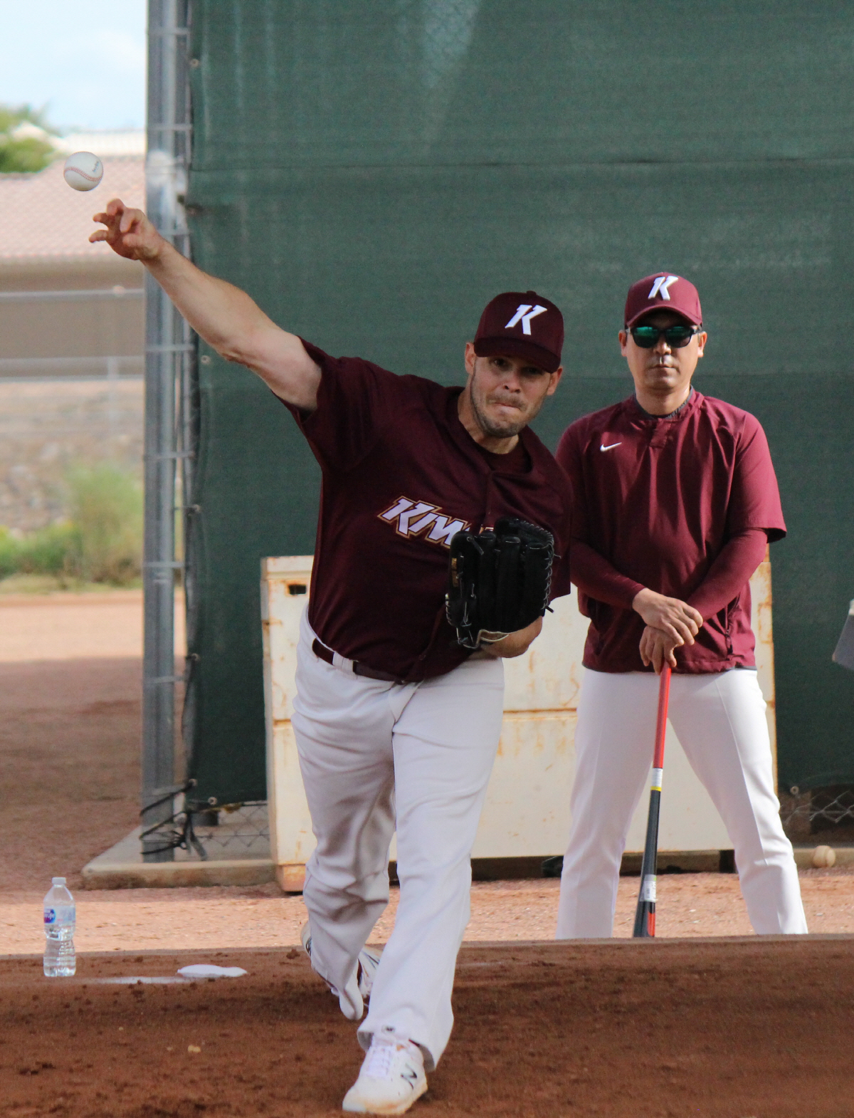 키움 히어로즈가 미국 애리조나주 피오리아에서 1차 전지훈련을 치르고 있다. 16일(한국시각) 자체 청백전이 우천으로 인한 그라운드 사정으로 취소돼 간단한 훈련으로 대신했다. 제이크 브리검이 불펜피칭을 하고 있다. 피오리아(미국 애리조나주)=권인하 기자 indyk@sportschosun.com