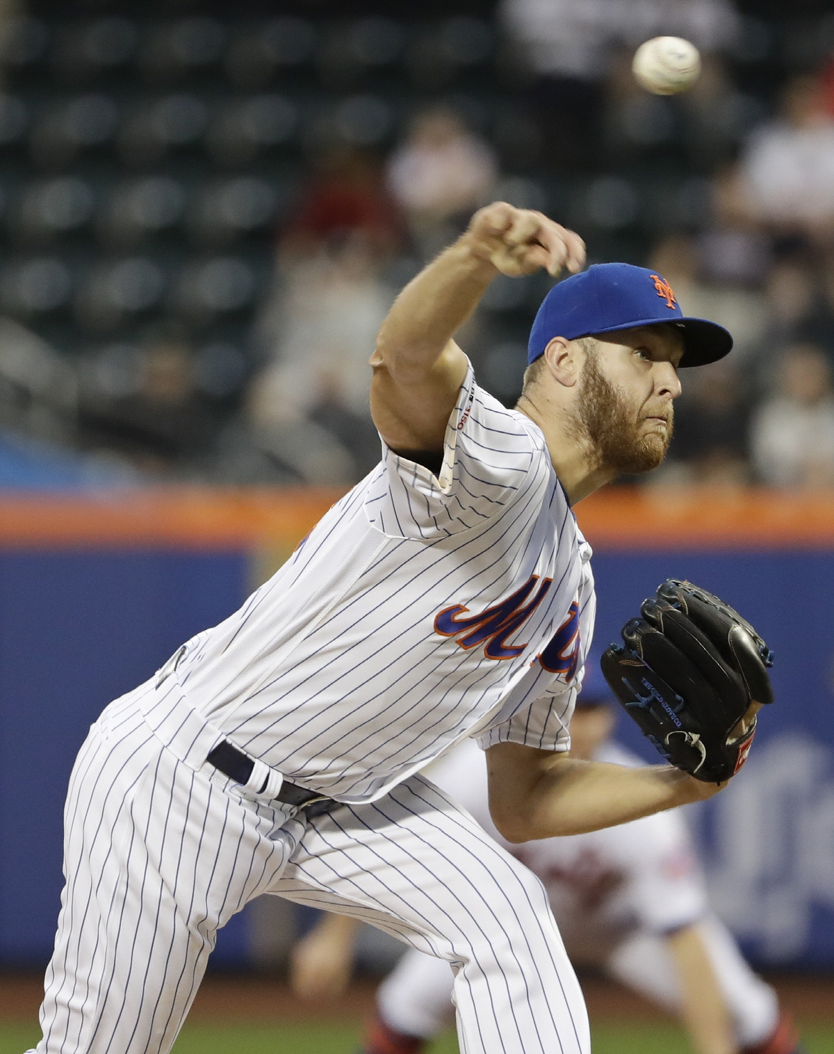 뉴욕 메츠 잭 휠러가 24일(한국시각) 필라델피아 필리스와의 경기에 선발등판해 1회초 투구를 하고 있다. 휠러는 이날 시즌 첫 홈런을 날리는 등 공수에서 맹활약했다. AP연합뉴스