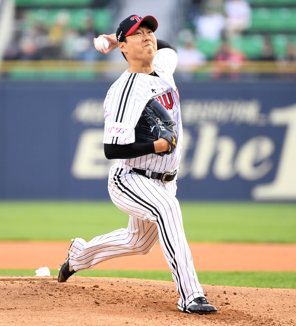 LG 트윈스와 KIA 타이거즈의 2019 KBO 리그 경기가 24일 잠실구장에서 열렸다. LG 선발투수 차우찬이 힘차게 공을 던지고 있다. 잠실=허상욱 기자 wook@sportschosun.com/2019.04.24/