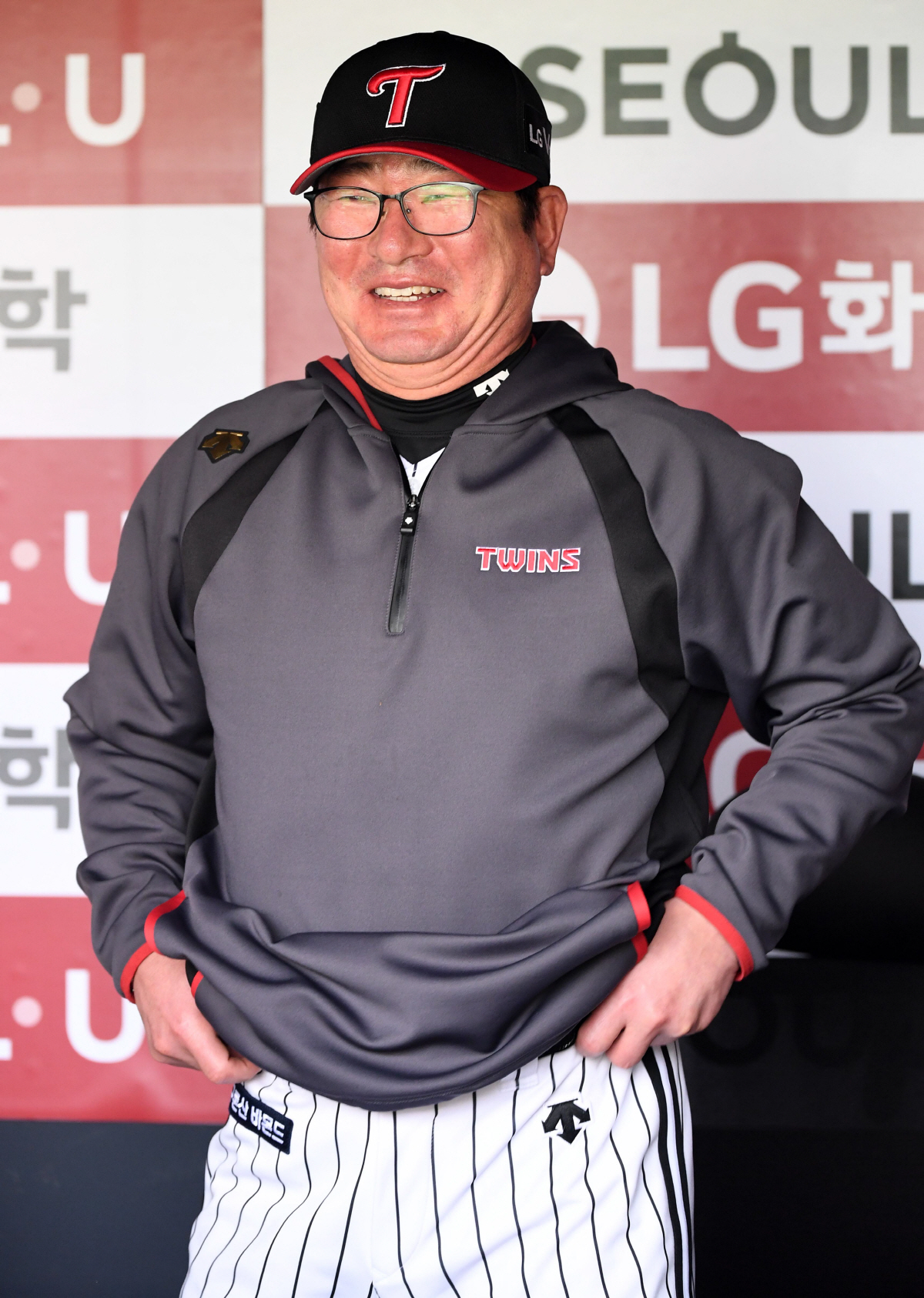 LG 트윈스와 KIA 타이거즈의 2019 KBO 리그 경기가 24일 잠실구장에서 예정된 가운데 양팀 선수단이 훈련을 펼쳤다. LG 류중일 감독이 취재진과 이야기를 나누고 있다. 잠실=허상욱 기자 wook@sportschosun.com/2019.04.24/
