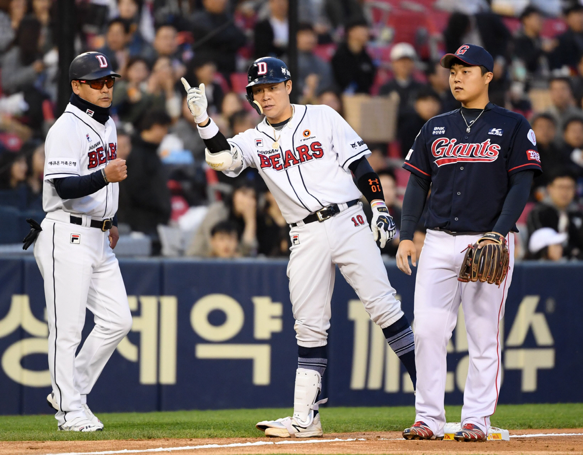 두산은 4회말 다시 3득점을 하면서 분위기를 가져갔다. 행운이 뒤따랐다. 오재일의 우전 안타와 박세혁의 2루타, 류지혁의 볼넷으로 만들어진 2사 만루에서 정수빈이 친 2루수 땅볼을 카를로스 아수아헤가 맨손으로 잡으려다 놓쳤고, 그 사이 오재일이 홈을 밟아 4-1이 됐다. 호세 미구엘 페르난데스가 친 유격수 땅볼도 신본기가 놓쳤고, 박세혁과 류지혁이 홈을 밟아 6-1까지 달아났다.