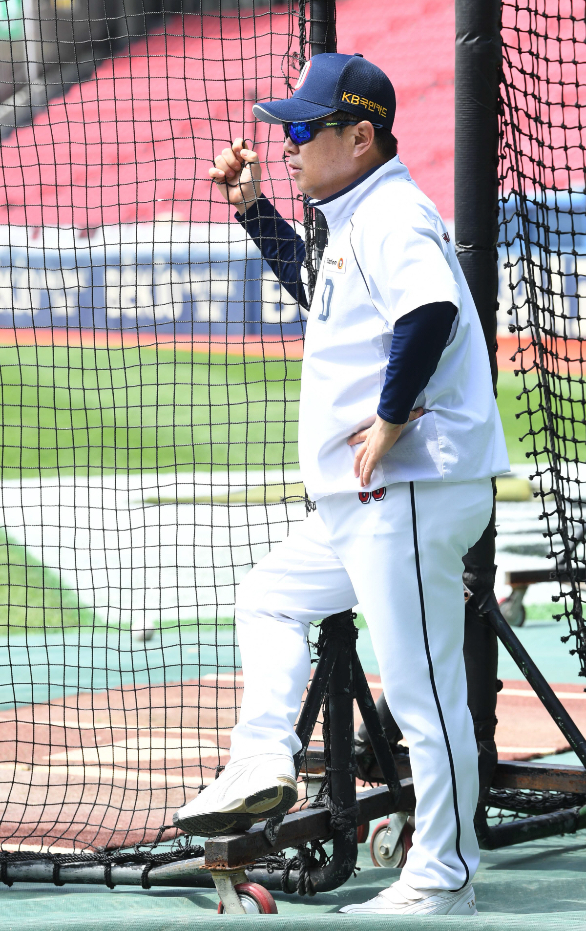 2019 KBO 리그 두산베어스와 롯데자이언츠의 경기가 28일 서울잠실야구장에서 열릴 예정이다. 경기전, 두산 김태형 감독이 선수들의 타격훈련을 지켜보고 있다. 잠실=최문영 기자 deer@sportschosun.com