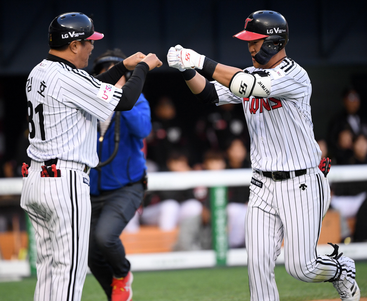 LG 트윈스 정주현이 시즌 첫 홈런을 터뜨렸다.