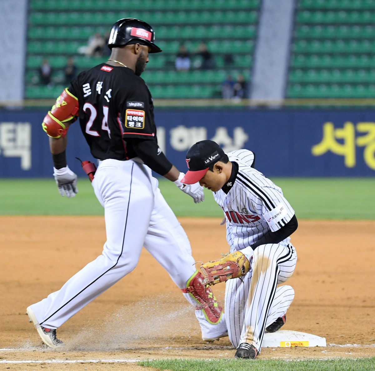 선두 오태곤에게 좌익선상 2루타를 맞은 차우찬은 문상철과 강백호를 연속 삼진 처리한 뒤 멜 로하스 주니어를 상대로도 볼카운트 1B2S에서 4구째 111㎞ 커브를 던져 헛스윙을 유도해 삼진으로 잡는 듯했다. 그러나 공은 원바운드 후 포수 유강남의 미트를 지나 뒤로 흘렀다. 로하스는 1루로 전력 질주해 처음엔 아웃 판정을 받았다가 비디오 판독 후 세이프로 번복됐다. 차우찬에게 폭투가 기록됐다. 스트라이크아웃 낫아웃도 엄연히 삼진으로 기록된다.