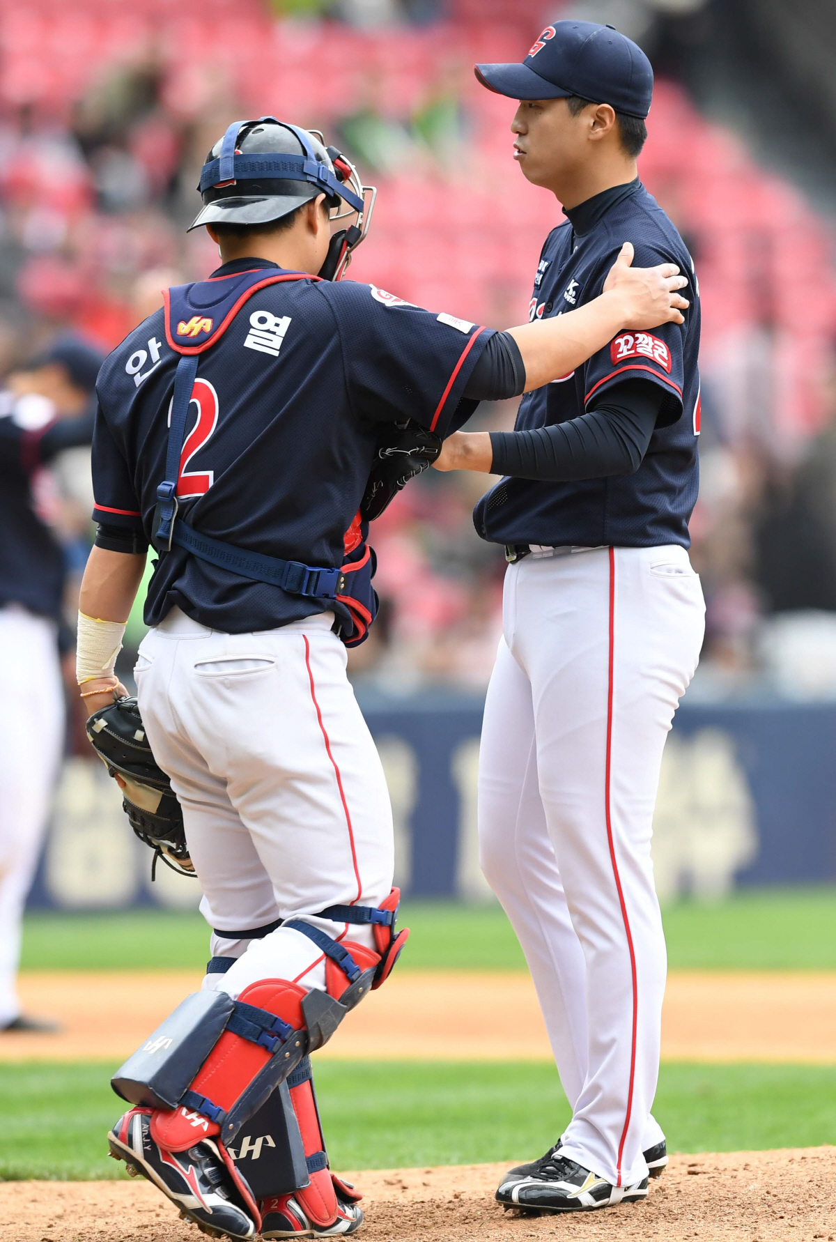 긴장된 표정으로 대타 노진혁과 마주한 구승민은 1S에서 좌익 선상 타구를 내줬으나, 파울 판정으로 한숨을 돌렸고, 곧 헛스윙을 이끌어내면서 삼진으로 첫 아웃카운트를 잡았다. 이어진 김진형과의 승부에서는 포수 앞 땅볼로 이날 마지막 아웃카운트를 잡으면서 경기를 마무리 했다. 구승민은 경기 후 포수 김준태와 하이파이브를 나누면서 승리를 축하했다.
