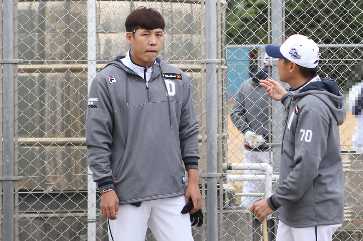 지난 2월 일본 오키나와 스프링캠프에서 두산 유니폼을 입고 훈련하는 권 혁. 사진제공=두산 베어스