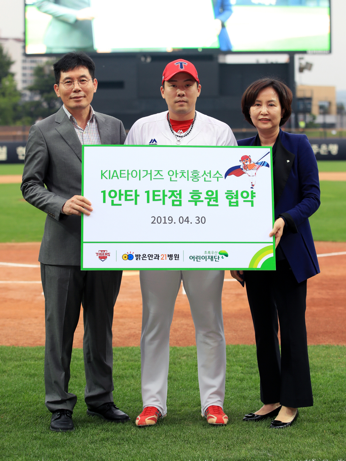 KIA 타이거즈의 내야수 안치홍(29)은 '기부천사'다. 2009년 KIA에 입단, 프로선수가 됐을 때부터 야구 꿈나무 후원을 시작했다. 당시에는 어린이재단과 '1안타 1도루 후원 협약'을 맺고, 취약계층 야구 꿈나무들이 열정을 펼칠 수 있도록 후원 활동을 해왔다.