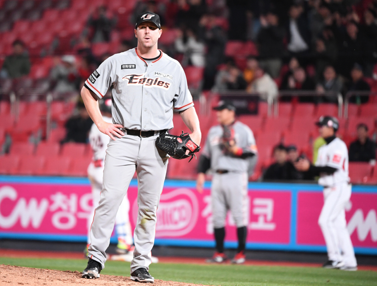 16일 수원 케이티위즈파크에서 KBO리그 KT 위즈와 한화 이글스의 주중 3연전 첫 번째 경기가 열렸다. 6회 빗맞은 안타에 연속 실점을 허용한 한화 서폴드가 아쉬운 표정을 짓고 있다. 수원=송정헌 기자 songs@sportschosun.com/2019.04.16/