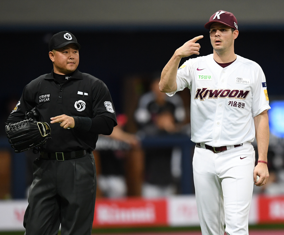 2019 KBO리그 LG 트윈스와 키움 히어로즈의 경기가 9일 고척 스카이돔에서 열렸다. 키움 브리검이 2회초 투구 도중 글러브 교체를 요구하고 있다. 고척=정재근 기자 cjg@sportschosun.com/2019.05.09/