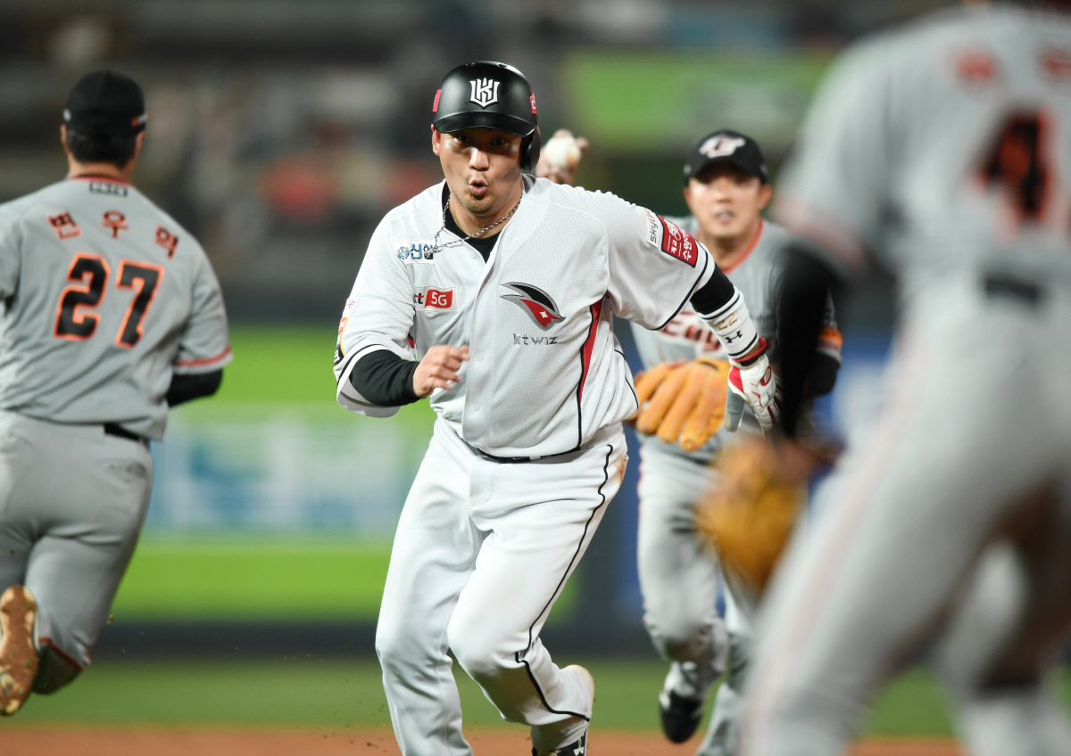 2019 KBO리그 한화 이글스와 KT 위즈의 경기가 18일 오후 수원 KT위즈파크에서 열렸다. 4회말 무사 1, 3루 KT 심우준의 병살타 때 1루주자 장성우가 태그를 피해 달아나고 있다. 수원=정재근 기자 cjg@sportschosun.com