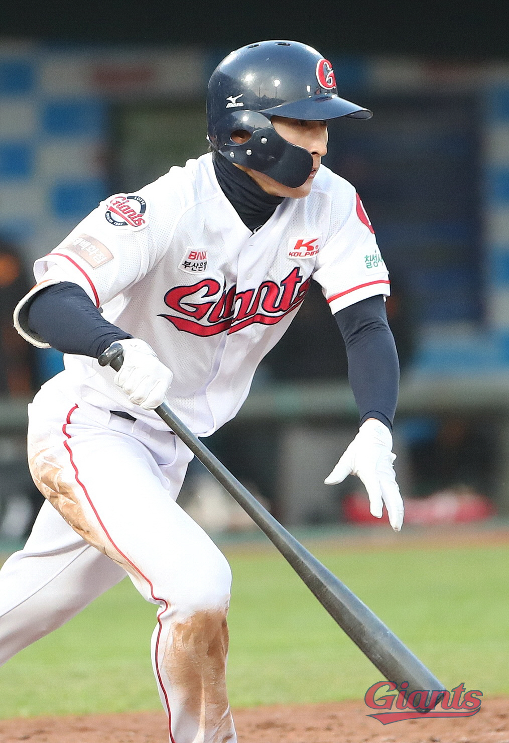 롯데 자이언츠 강로한이 데뷔 첫 홈런의 감격을 맛봤다.
