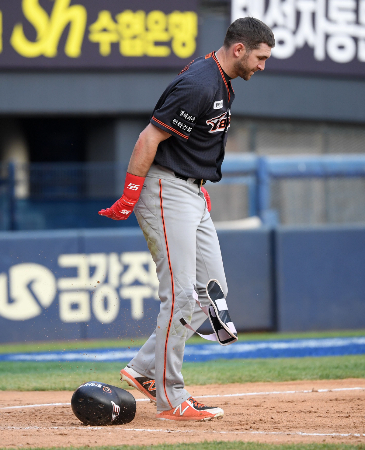 LG 트윈스와 한화 이글스의 2019 KBO 리그 주말 3연전 두번째 경기가 11일 잠실구장에서 열렸다. 5회초 한화 호잉이 삼진으로 물러나며 아쉬워하고 있다. 잠실=허상욱 기자 wook@sportschosun.com/2019.05.11/