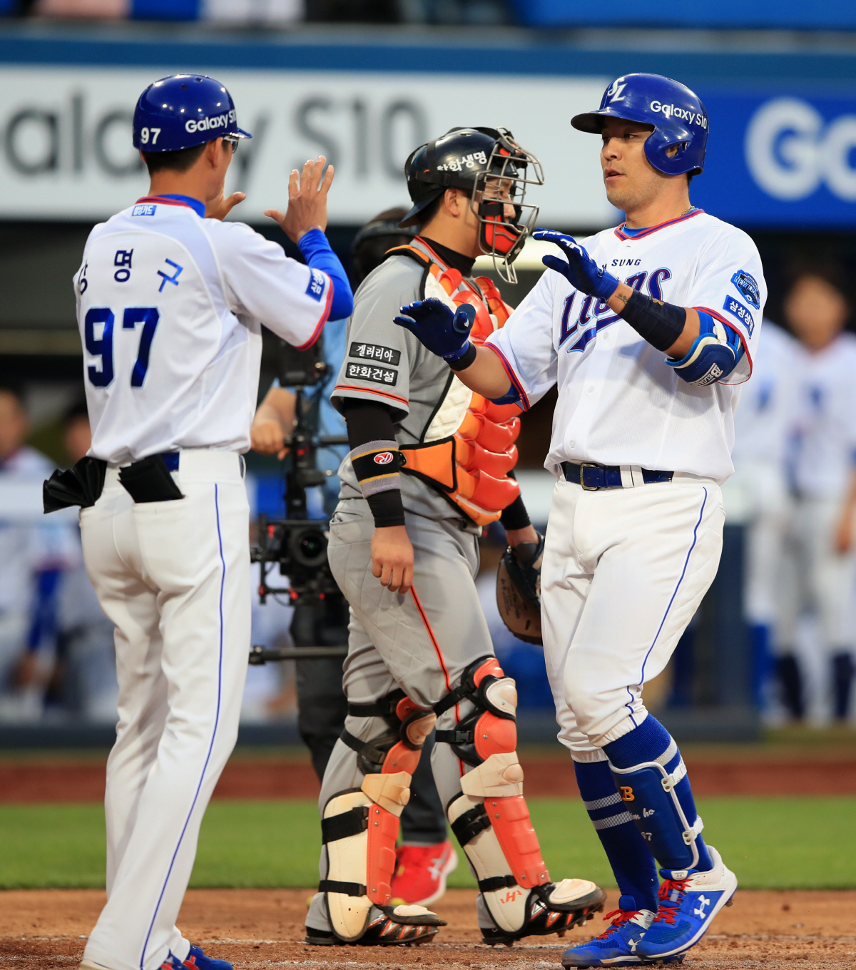 승리의 주역이 된 강민호는 경기 후 응원 단상에 올랐다. 수훈 선수로 선정됐기 때문. 올 시즌 첫 응원 단상 인터뷰였다. 강민호는 "그동안 못했기 때문에 단상에 못 올라갔다"면서 "첫 타석에 체인지업에 당하면서 3루수 땅볼을 쳤다. 두 번째 타석에선 체인지업이 승부로 오지 않을까 생각했는데, 운이 좋게 실투가 와서 좋은 결과가 나왔다. 사실 두 번째 홈런도 홈런이 될지는 몰랐다"고 말했다.