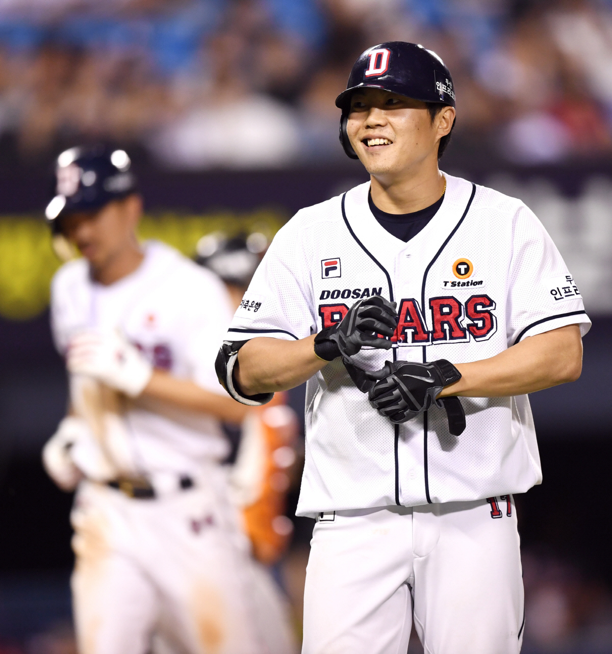 2019 KBO리그 한화 이글스와 두산 베어스의 경기가 25일 잠실구장에서 열렸다. 8회말 2사 만루 두산 류지혁이 밀어내기 볼넷을 얻어낸 후 기뻐하고 있다. 잠실=정재근 기자 cjg@sportschosun.com/2019.05.25/