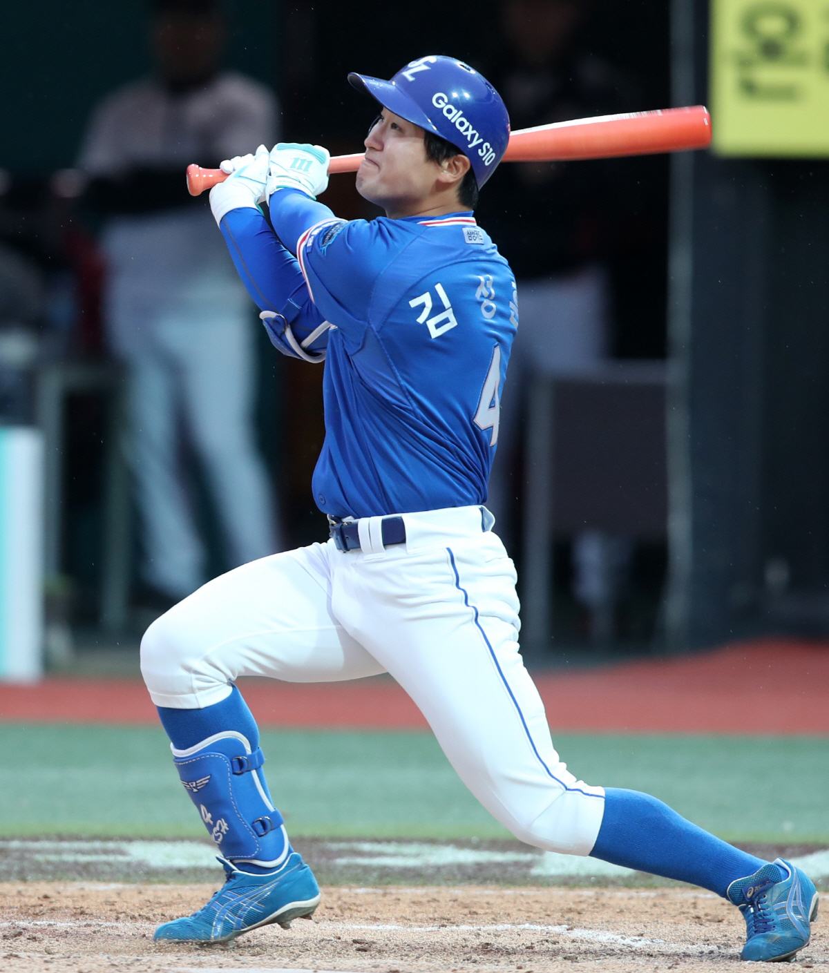 26일 대구 키움전에 2번 2루수로 선발 출전한 김성훈은 1-3으로 뒤지던 6회말 2사 후 브리검의 3루째 145㎞짜리 높은 패스트볼을 당겨 우측 담장을 넘겼다. 2016년 삼성 입단 이후 통산 192경기 만에 쏘아올린 데뷔 첫 홈런. 중요한 순간에 터졌다.