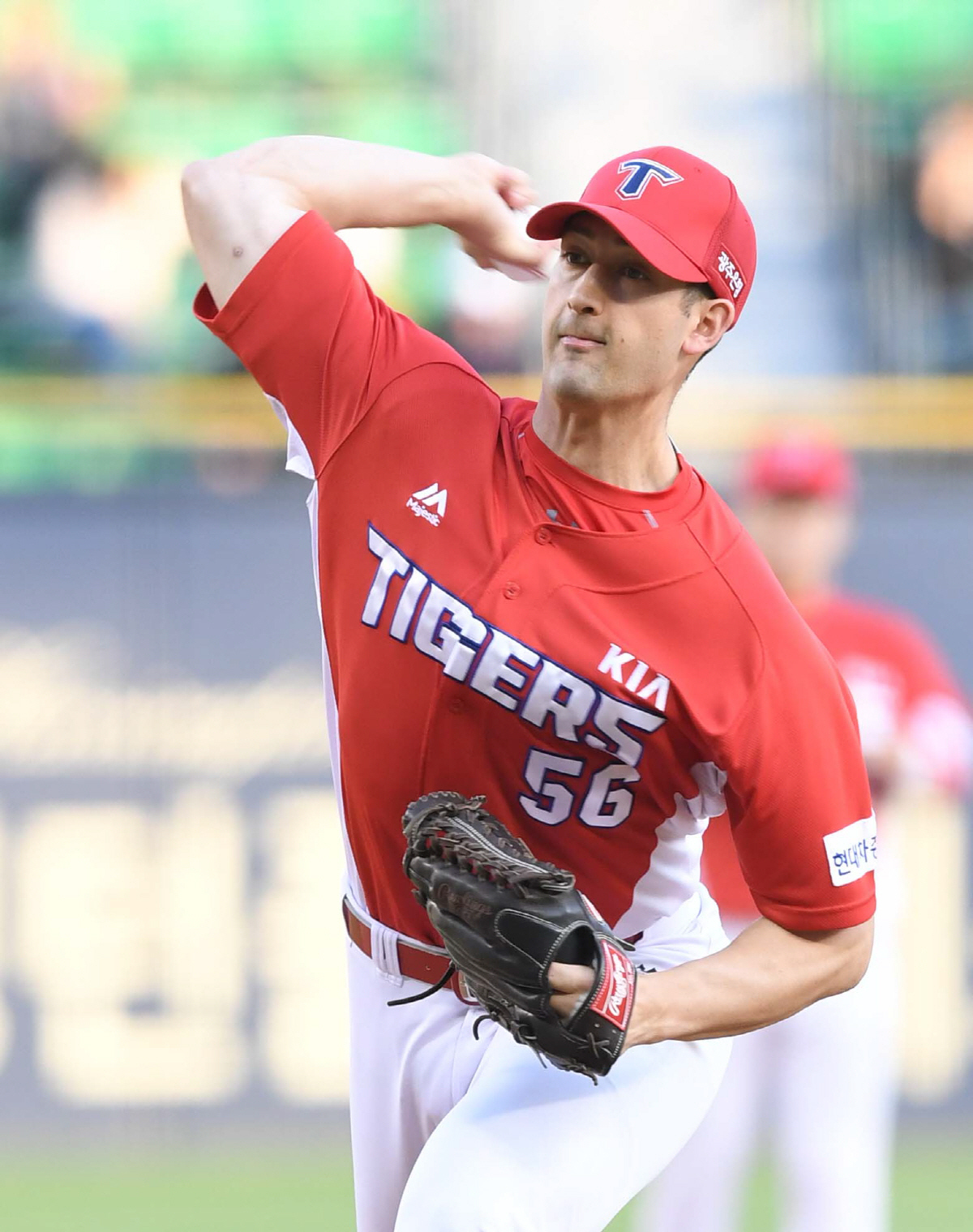 윌랜드는 6-0으로 앞선 6회 한 점을 내줬다. 제구력이 갑자기 흔들렸다. 선두 강백호와 로하스에게 연속 볼넷을 허용했고, 1사후 황재균에게 148㎞ 직구를 한복판으로 던지다 좌전적시타를 얻어맞았다. 그러나 윌랜드는 박경수를 투수 병살타로 제압하며 추가 실점을 막았다. 광주=노재형 기자 jhno@sportschosun.com
