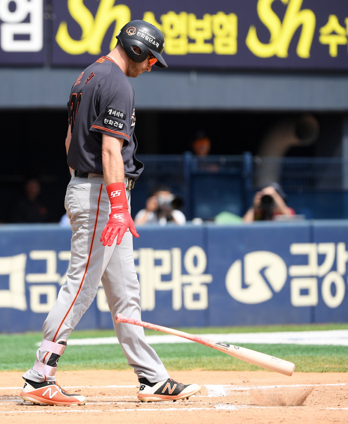두산 베어스와 한화 이글스의 2019 KBO 리그 경기가 26일 잠실구장에서 열렸다. 3회초 2사 1루 한화 호잉이 삼진으로 물러나며 아쉬워하고 있다. 잠실=허상욱 기자 wook@sportschosun.com/2019.05.26/