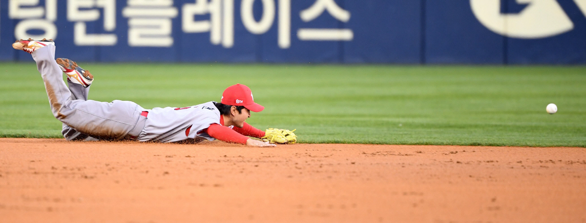 5회초에도 비슷한 상황이 발생했다. 선두 7번 박경수의 땅볼을 유격수 김성현이 잡지 못했다. 이번에도 타구는 김성현의 정면으로 왔고 김성현이 백핸드 캐치를 시도했는데 글러브에 맞고 그라운드로 떨어졌다. 1사후 9번 심우준의 3루 기습번트로 2사 2루가 됐고, 다시 1번 김민혁이 배트가 부러지면서 친 것이 중전안타가 돼 박경수가 홈을 밟았다.