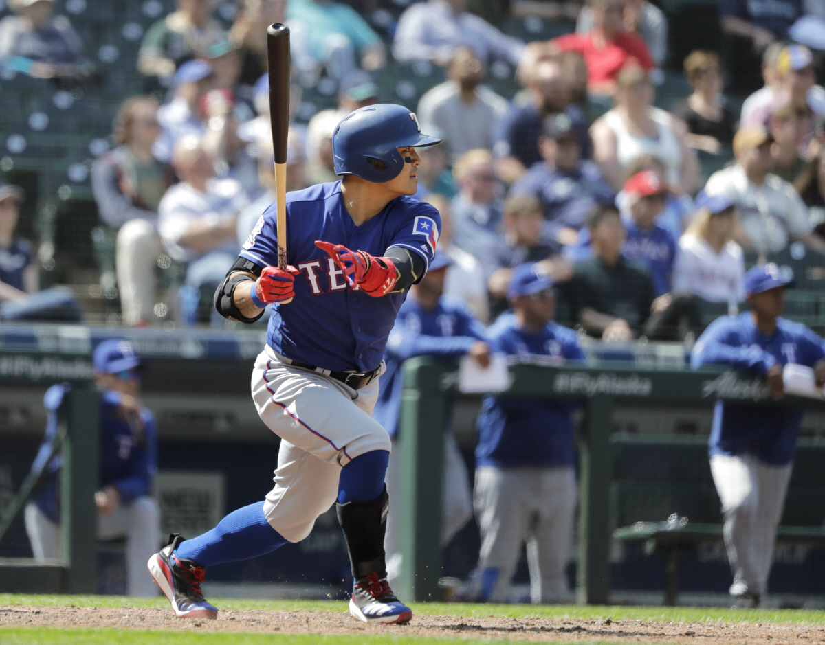 텍사스 레인저스 추신수가 30일(한국시각) 시애틀 매리너스전서 8회초 2사 2,3루서 대타로 나와 좌전 적시타를 치고 있다. AP연합뉴스
