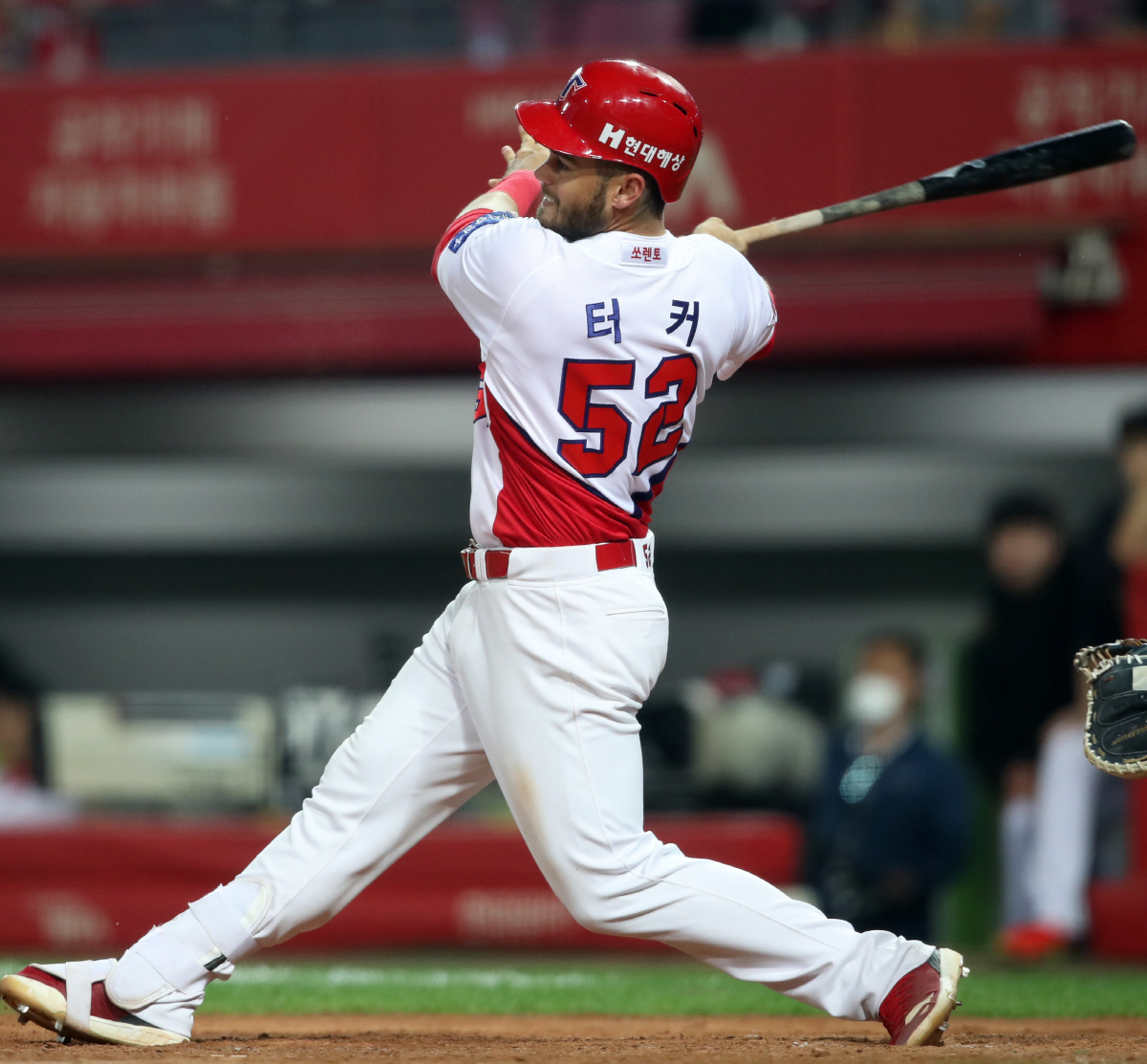 5월 중순 제레미 해즐베이커의 대체선수로 KIA 유니폼을 입은 터커는 11경기 만에 첫 홈런을 뽑아냈다. 대전=김진회 기자 manu35@sportschosun.com