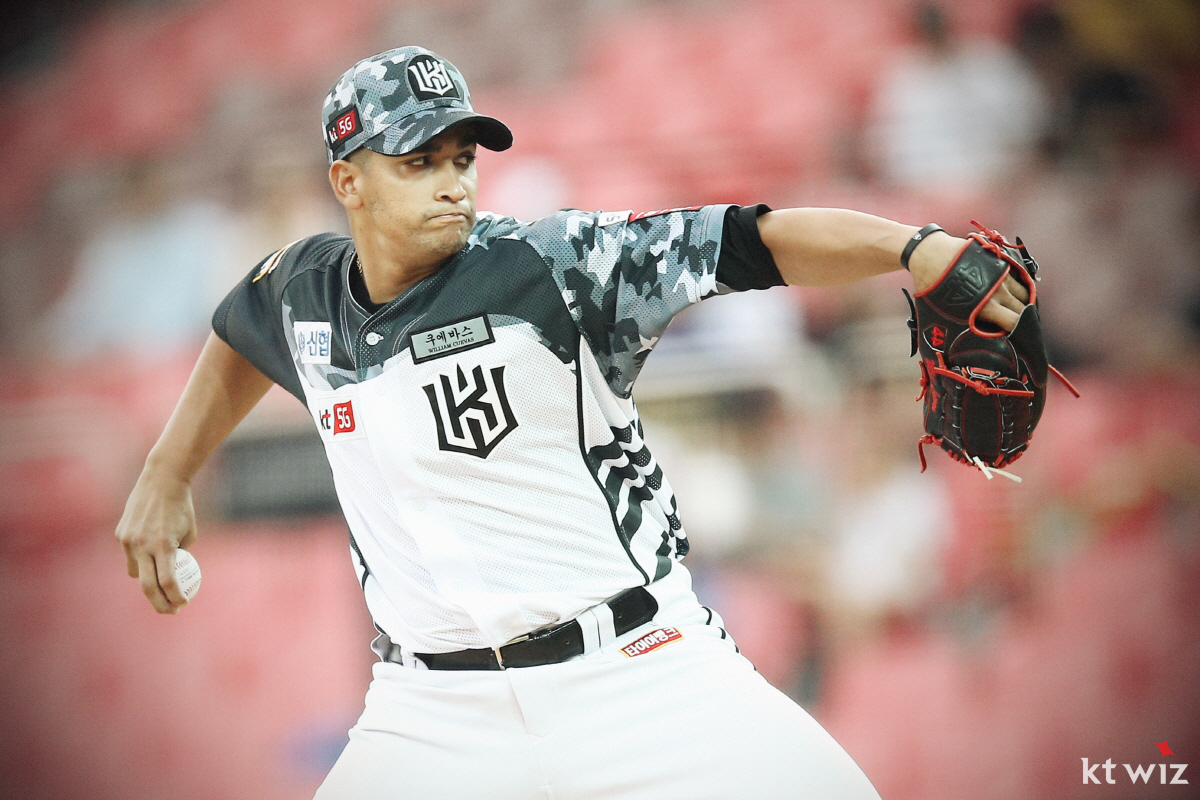 쿠에바스는 21일 수원 케이티위즈파크에서 펼쳐진 NC전에 선발 등판해 8이닝 동안 2안타 1볼넷 3탈삼진 무실점을 기록했다. 총 투구수는 108개. 올 시즌 14경기서 4승5패, 평균자책점 4.81이었던 쿠에바스는 이날 완벽에 가까운 피칭으로 NC 타선을 틀어막았고, 팀이 5-0으로 앞서던 9회초 마운드를 내려왔다.