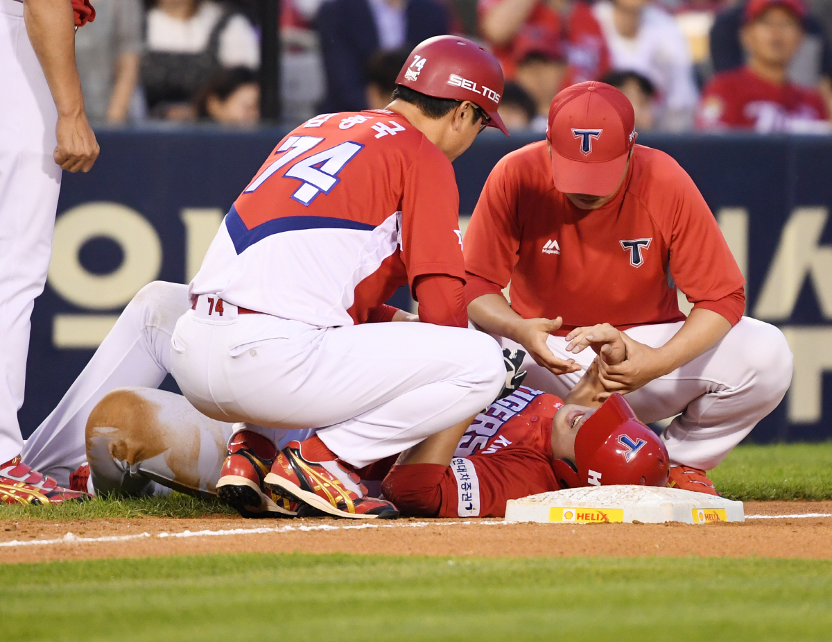 안치홍은 21일 잠실 LG 트윈스전에 선발 출장했다. 부상 상황은 4회초 KIA 공격때 발생했다.1사 2,3루 찬스에서 2타점 2루타를 친 안치홍은 상대 폭투때 3루 진루에 성공했다. 하지만 3루 베이스를 슬라이딩 터치하는 과정에서 손 통증이 생겼다. 한참동안 고통을 호소한 안치홍은 구단 트레이너의 확인 후 더그아웃으로 교체돼 돌아갔다. 대주자 류승현이 투입됐다.